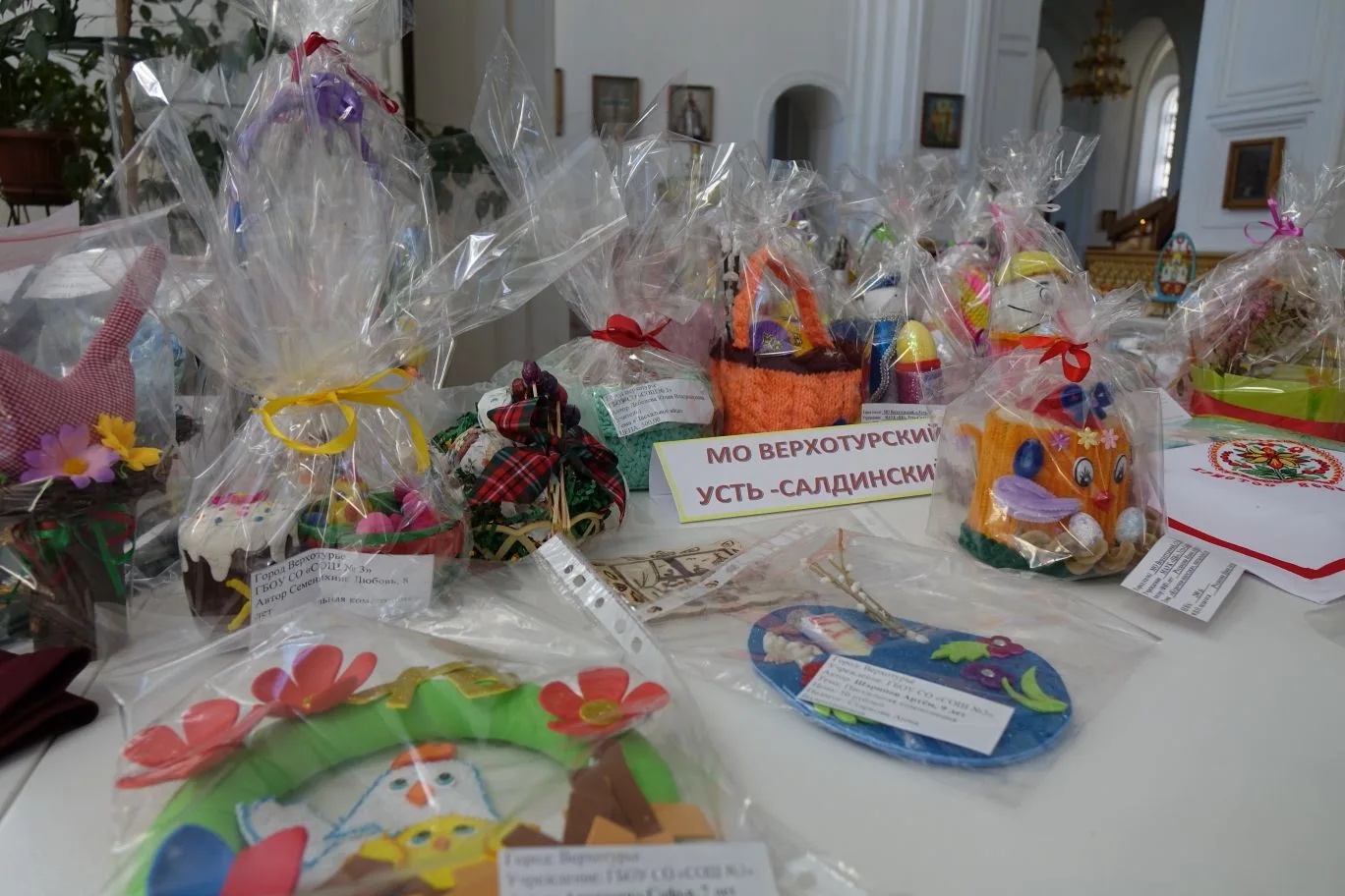 В Верхотурье прошел конкурс детского творчества «Пасхальные перезвоны – 2026». Участие в конкурсе приняли детские сады, общеобразовательные школы, гимназия, школа искусств, воскресная школа, Центры Детского творчества, детские творческие объединения города и района. Около 500 детских работ были переданы в Свято-Николаевский мужской монастырь в Крестовоздвиженский собор, где проходит традиционная выставка-ярмарка пасхальных сувениров. Выполнены детские работы в самых разных техниках: аппликации, рисунки, вышивка, бисероплетение, вязание, квиллинг, декупаж. По окончании выставки каждому участнику будут вручены грамоты, сертификаты и ценные подарки.