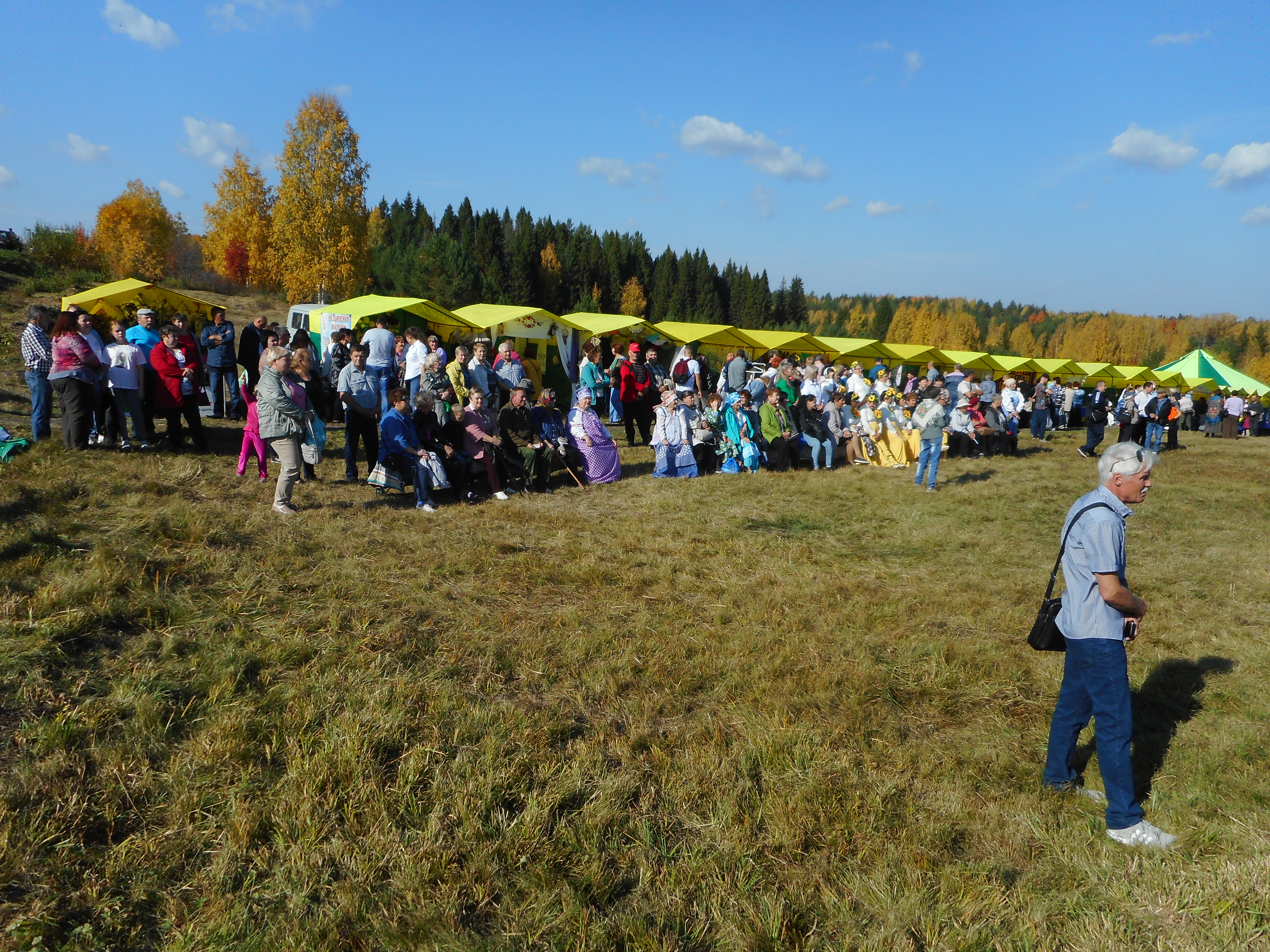 По традиции в Симеоновские праздники у храма Всех Святых в земле Сибирской просиявших, открылась Симеоновская ярмарка. Как всегда, здесь собрались творческие коллективы, предприниматели и представители фермерских хозяйств. Жители окрестных сёл и деревень Верхотурского округа привезли свою продукцию: разнообразные овощи и заготовки, мёд, сыр, молоко, творог, сметану, яйца, грибочки, клюкву, лекарственные травы. Богатый выбор товаров был представлен Свято-Косьминской пустынью – более двадцати видов чаев, варений и джемов, сыры, кедровые шишки в шоколаде и многое другое под известной уже в области маркой «Косьминский гостинец». Уже не в первый раз из Ирбитского городского округа приехала на Симеоновскую ярмарку семья Кожокарь. Помимо сельскохозяйственной продукции, привезли выращенный на суровой уральской земле виноград. Эта молдавская семья приезжает сюда ещё и к святыням православия, к местам, где совершал духовные подвиги Симеон Праведный. На ярмарке можно было попробовать уху, которая варилась на кострах в больших котлах. Всем желающим предлагалась уха боярская, царская, архиерейская, стерляжья, уха с грибами. Ярмарка удивляла половиками и ковриками ручной работы – вся лужайка возле храма была выстелена этими искусными изделиями. Творческие коллективы вовлекали гостей в хороводы, знакомили с русскими народными играми. Во время рассказа о том, как раньше хозяйки управлялись с русской печью, давали попробовать гречневой каши, приготовленной в настоящей русской печи. В работе молодежного туристического форума выступали гости из Североуральска, Нижнего Тагила, Карпинска. Вот так святой праведный Симеон Верхотурский каждый год собирает земляков на своем любимом месте у камня над Турой.