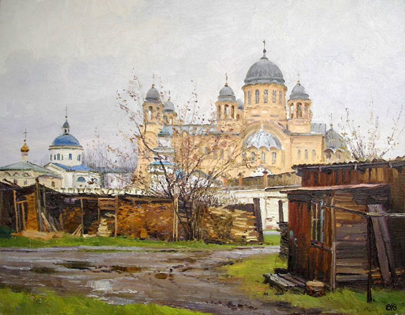Старина Верхотурья всегда привлекала творческих людей, особенно художников. Да и не удивительно. Красота монастырей, храмов, уральской природы не может не вызывать откликов в душах людей. Один из тех, кто сегодня вдохновенно, в строгом и безупречном жанре русской классики пишет о Верхотурье – это известный екатеринбургский художник Алексей Ефремов, признанный мастер городского пейзажа. Он очень глубоко и сильно сумел выразить Верхотурье на своих картинах: это и Свято-Троицкий собор, и Свято-Николаевский мужской монастырь, силуэты храмов – то в золоте осени, то под зимним морозным солнцем, а иногда с ледоходом и весенним разливом Туры, обаяние старинных зданий деревянных улочек. Алексей – великолепный мастер своего дела.