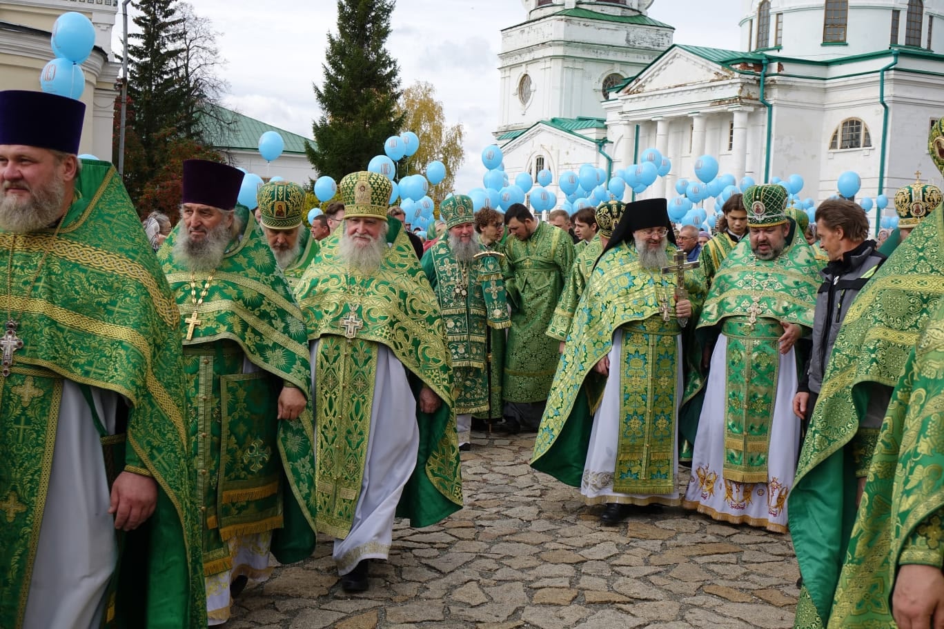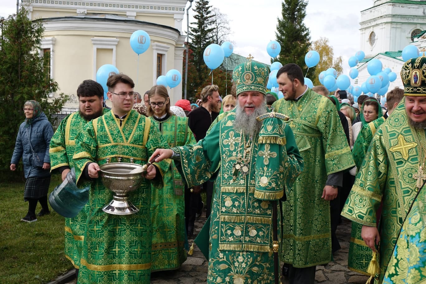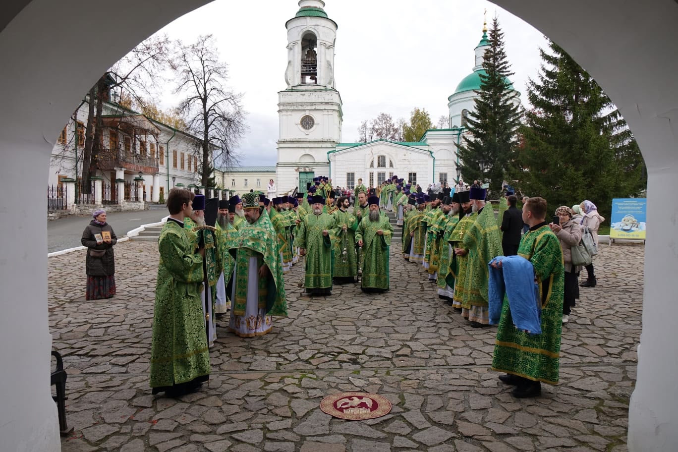 ПЕРЕНЕСЕНИЕ МОЩЕЙ СВЯТОГО ПРАВЕДНОГО СИМЕОНА ВЕРХОТУРСКОГО Сведения о жизни Симеона очень краткие и известны только из его жития, составленному в конце XVII века на основе рассказов его современников. Согласно житию, Симеон имел дворянское происхождение, но оставив дом пришёл в Сибирь, где вёл жизнь странника, скрывал своё происхождение. Большую часть жизни в Сибири провёл в селе Меркушино (около 53 км. от Верхотурья) и его окрестностях. В селе посещал местную деревянную церковь святого Архангела Михаила. В десяти верстах от Меркушино на берегу реки Туры Симеон летом уединялся для молитвы, добывая себе пропитание рыбной ловлей. Зимой он занимался пошивом шуб для крестьян в сёлах Верхотурского уезда. Отличался нестяжанием и чтобы не получать платы, оставлял одежду недошитой и уходил из села. Вёл проповедь христианства среди вогулов. Скончался в Меркушино в 1642 году и был похоронен на кладбище при церкви. В 1692 году гроб Симеона поднялся из могилы, так что в нём стали видны его останки. Местные жители расценили это как признак святости умершего, но его имя вспомнить не смогли. После этого появляются сообщения о чудесных исцелениях, связанных с Симеоном (в основном исцеление кожных заболеваний с помощью земли из могилы святого). В 1693 году в Меркушино Сибирским архиереем был направлен клирик Матфей для изучения сообщений о чудесах. Он сделал сообщение митрополиту и дал указание построить над могилой небольшой голбец. 18 декабря 1694 года по указанию митрополита Сибирского и Тобольского Игнатия игуменом Далматовского монастыря Исааком с прочими клириками было совершено освидетельствование мощей и опрос о имевших место исцелениях. На следующий день в Мекрушино прибыл сам митрополит, но выслушав донесение Исаака, что «в гробе нашли совершенно целое тело, исключая истлевших пальцев у одной руки и платья, и что при свидетельствовании они ощутили от тела благовонный запах», отнёсся к данному факту скептически. Житие сообщает, что после этого у митрополита заболел глаз и он, решив, что это кара за его сомнение, сам освидетельствовал мощи. В гробе, поднятом из могилы, были найдены костные останки, плотно покрытые плотью, и истлевшая одежда. Игнатий объявил их нетленными, а затем, по сообщению жития, во сне получил откровение об имени святого и повелел именовать его новоявленным угодником Божиим праведным Симеоном. 12 сентября 1704 года мощи Симеона из Меркушино с разрешения митрополита Филофея (Лещинского) были перенесены в Николаевский монастырь города Верхотурье, где их поместили в монастырской церкви у правого клироса. С перенесением мощей предание связывает чудесную остановку крестного хода по молитве хромого юродивого Космы, желавшего отдохнуть.