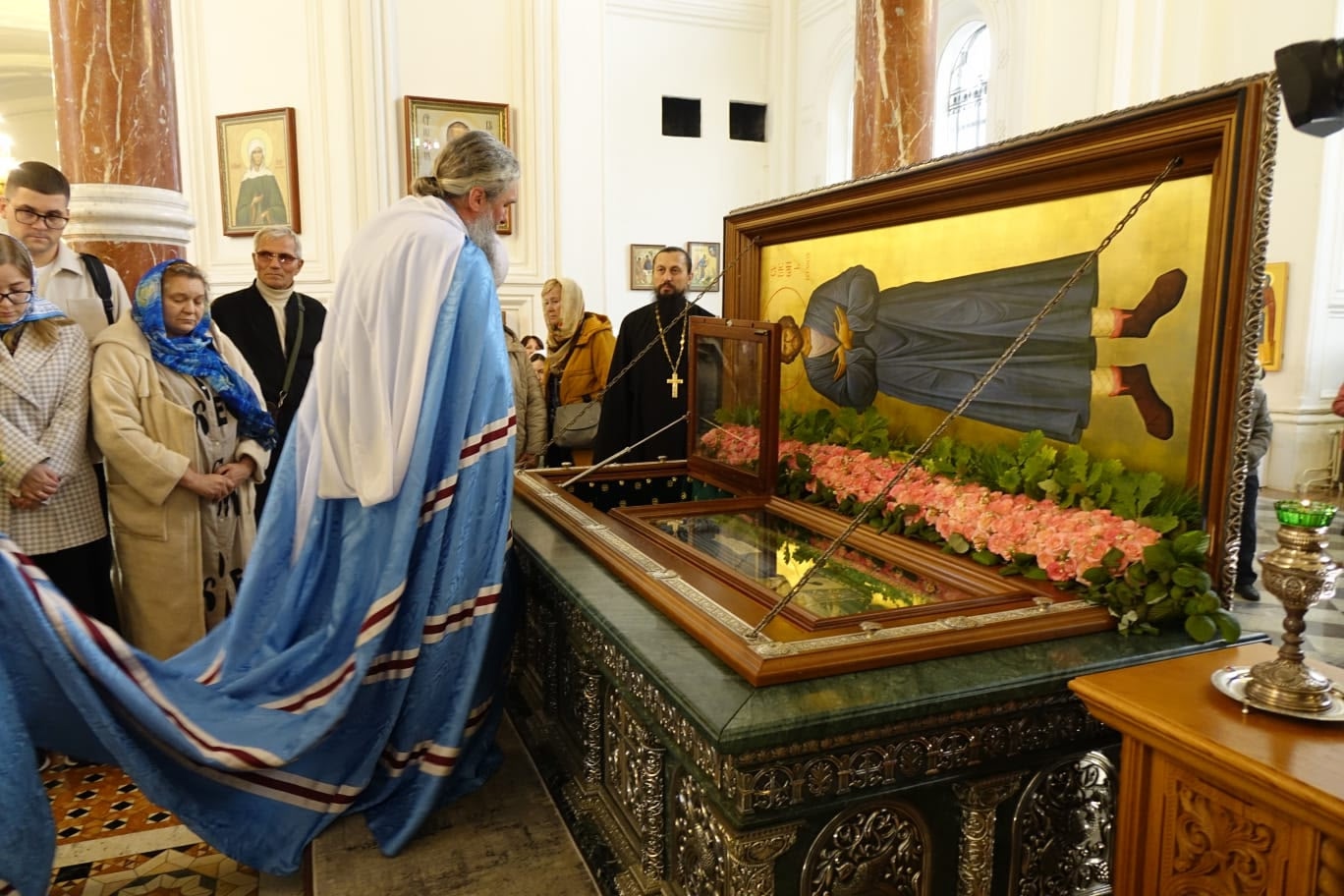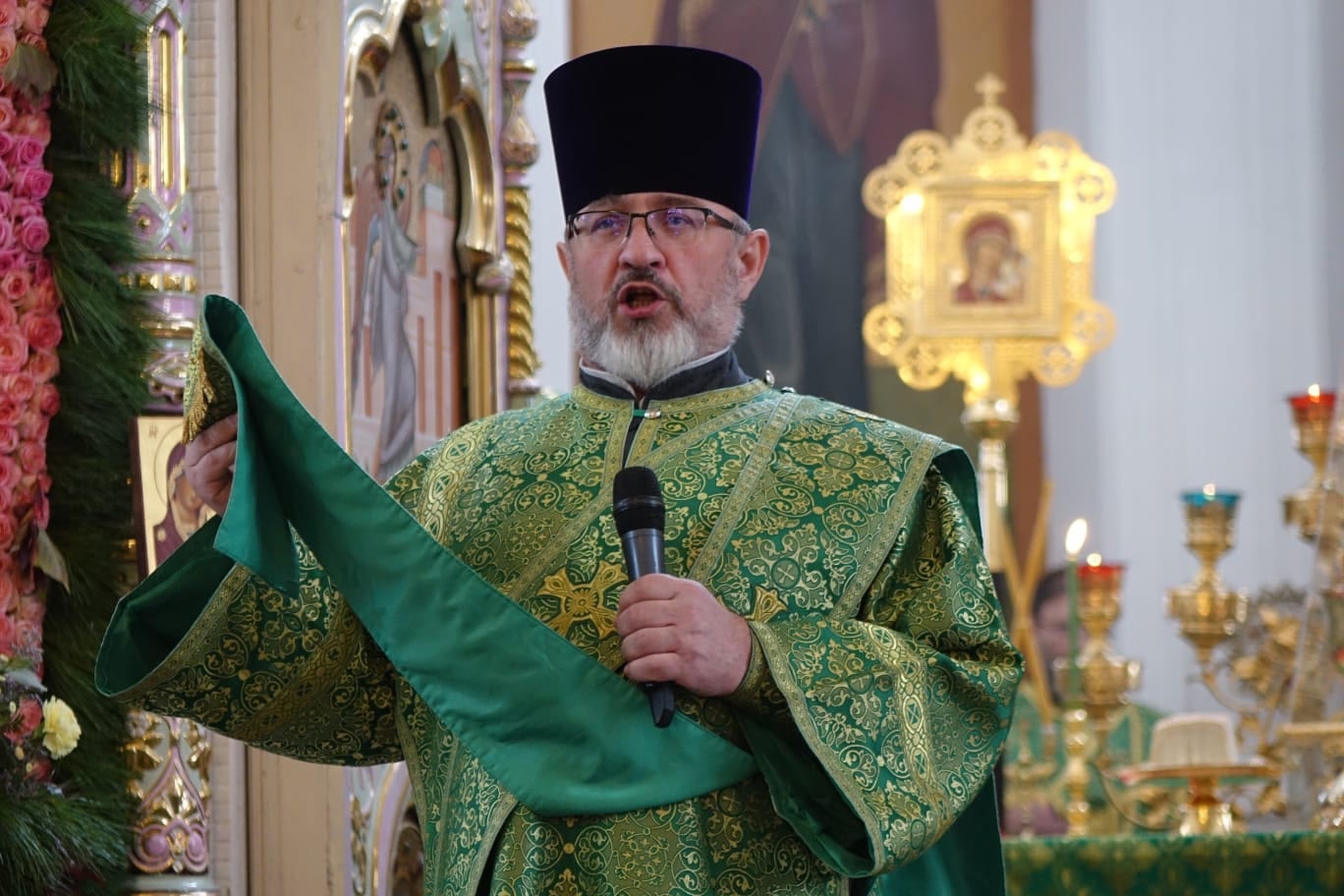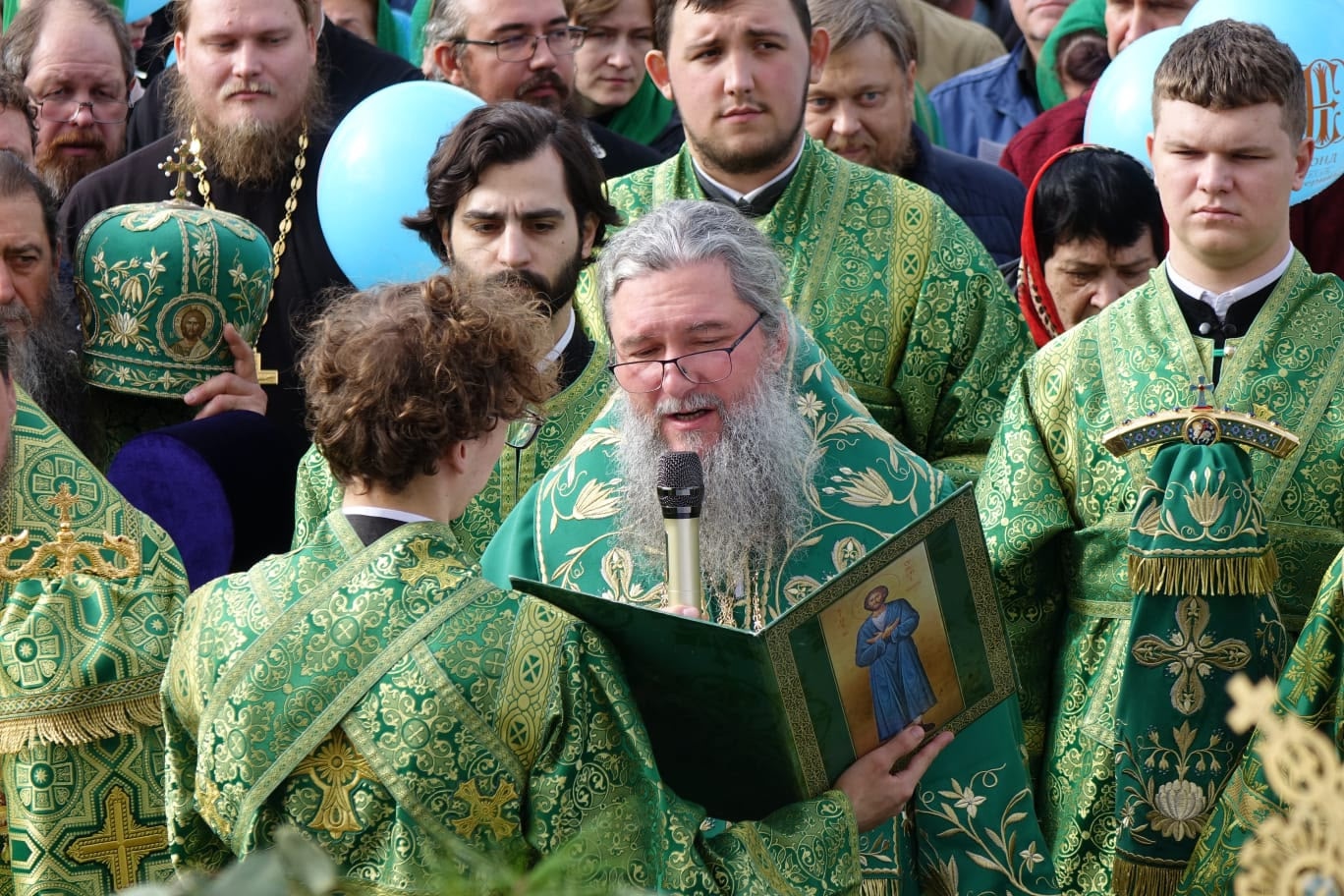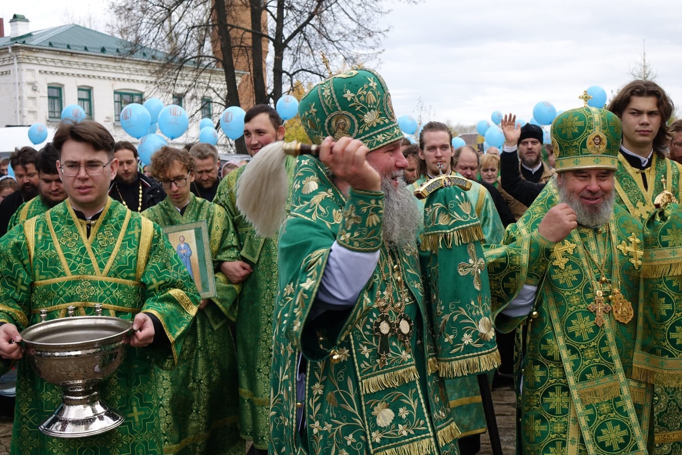 ПЕРЕНЕСЕНИЕ МОЩЕЙ СВЯТОГО ПРАВЕДНОГО СИМЕОНА ВЕРХОТУРСКОГО Сведения о жизни Симеона очень краткие и известны только из его жития, составленному в конце XVII века на основе рассказов его современников. Согласно житию, Симеон имел дворянское происхождение, но оставив дом пришёл в Сибирь, где вёл жизнь странника, скрывал своё происхождение. Большую часть жизни в Сибири провёл в селе Меркушино (около 53 км. от Верхотурья) и его окрестностях. В селе посещал местную деревянную церковь святого Архангела Михаила. В десяти верстах от Меркушино на берегу реки Туры Симеон летом уединялся для молитвы, добывая себе пропитание рыбной ловлей. Зимой он занимался пошивом шуб для крестьян в сёлах Верхотурского уезда. Отличался нестяжанием и чтобы не получать платы, оставлял одежду недошитой и уходил из села. Вёл проповедь христианства среди вогулов. Скончался в Меркушино в 1642 году и был похоронен на кладбище при церкви. В 1692 году гроб Симеона поднялся из могилы, так что в нём стали видны его останки. Местные жители расценили это как признак святости умершего, но его имя вспомнить не смогли. После этого появляются сообщения о чудесных исцелениях, связанных с Симеоном (в основном исцеление кожных заболеваний с помощью земли из могилы святого). В 1693 году в Меркушино Сибирским архиереем был направлен клирик Матфей для изучения сообщений о чудесах. Он сделал сообщение митрополиту и дал указание построить над могилой небольшой голбец. 18 декабря 1694 года по указанию митрополита Сибирского и Тобольского Игнатия игуменом Далматовского монастыря Исааком с прочими клириками было совершено освидетельствование мощей и опрос о имевших место исцелениях. На следующий день в Мекрушино прибыл сам митрополит, но выслушав донесение Исаака, что «в гробе нашли совершенно целое тело, исключая истлевших пальцев у одной руки и платья, и что при свидетельствовании они ощутили от тела благовонный запах», отнёсся к данному факту скептически. Житие сообщает, что после этого у митрополита заболел глаз и он, решив, что это кара за его сомнение, сам освидетельствовал мощи. В гробе, поднятом из могилы, были найдены костные останки, плотно покрытые плотью, и истлевшая одежда. Игнатий объявил их нетленными, а затем, по сообщению жития, во сне получил откровение об имени святого и повелел именовать его новоявленным угодником Божиим праведным Симеоном. 12 сентября 1704 года мощи Симеона из Меркушино с разрешения митрополита Филофея (Лещинского) были перенесены в Николаевский монастырь города Верхотурье, где их поместили в монастырской церкви у правого клироса. С перенесением мощей предание связывает чудесную остановку крестного хода по молитве хромого юродивого Космы, желавшего отдохнуть.