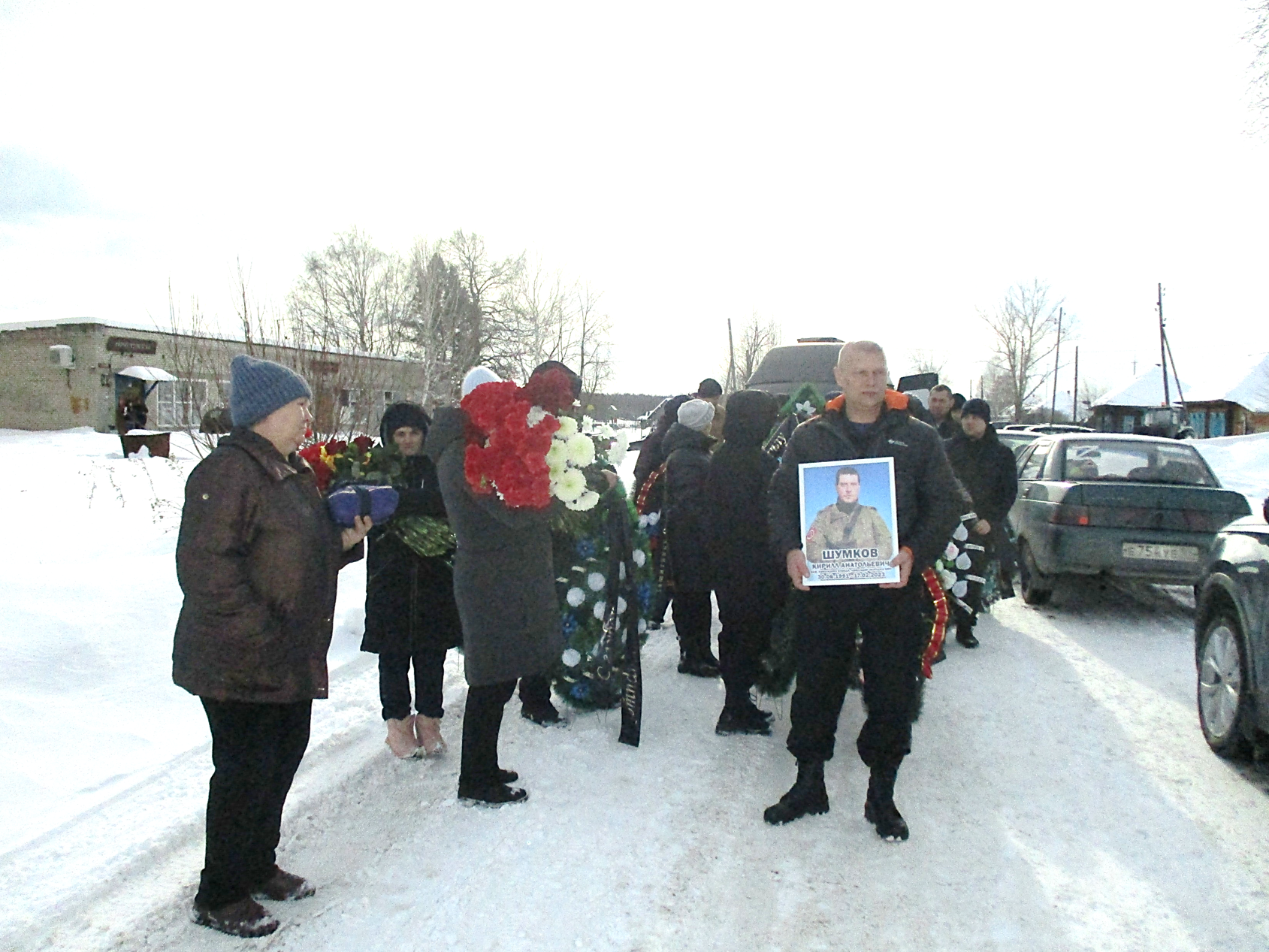 В нашем Верхотурском округе произошло еще одно скорбное событие - прощание со своим земляком, жителем Прокоп-Салды Кириллом Шумковым. Отпевание погибшего воина провел насельник Свято-Николаевского мужского монастыря отец Аркадий. Кирилл родился и вырос в Прокоп-Салде, окончил школу, здесь и остался. 29 сентября 2022 года был призван по частичной мобилизации. Воевал в составе штурмового подразделения. Погиб Кирилл на Донбассе 17 февраля 2023 года. Посмертно награжден Орденом Мужества. Дома остались мама, бабушка, сестры. Проститься с погибшим пришли все жители села, приехали и Верхотурцы. На гражданской панихиде в сельском Центре культуры выступили глава городского округа А. Лиханов, военком С. Миронов, представитель воинской части М. Золотухин, учителя и одноклассники Кирилла. Похоронили героя на сельском кладбище. В большой семье Шумковых есть еще один погибший воин-герой - дядя Кирилла, матрос-срочник Василий Шумков, который погиб зимой 1995 года при штурме Грозного.