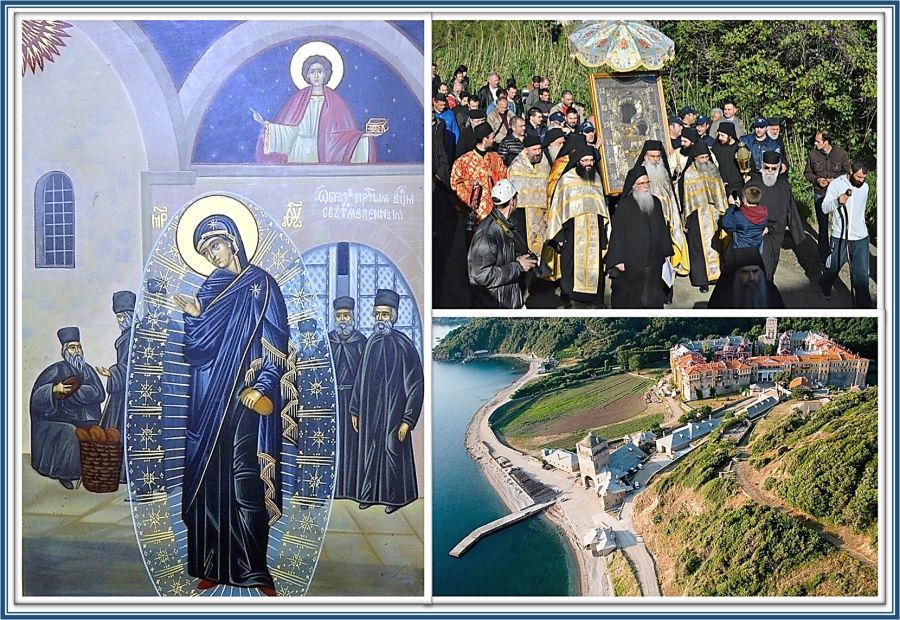 «В 1830 году на Святой Горе было много турецких войск, и поэтому на какое-то время в монастыре Ивирон не осталось ни одного монаха. Отцы ушли - кто со святыми мощами, кто для того, чтобы помочь восстанию. Только один монах приходил издалека возжигать лампады и подметать обитель. И внутри монастыря, и снаружи было полным-полно вооружённых турок, и этот бедняжка, подметая, говорил: «Матерь Божия! Что же это будет?». Однажды, с болью молясь Божией Матери, он видит приближающуюся к нему Жену, светящуюся лицом. Это была Богородица. Она взяла из его руки метлу и говорит: «Не умеешь ты хорошо подметать, Я Сама подмету», ̶ и начала мести, а потом исчезла внутри алтаря. Через три дня ушли все турки! Матерь Божия всех выгнала. То, что не, по правде, Бог выбросит вон». Преподобный Паисий Святогорец