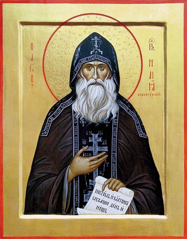 Отец Илия родился в городе Курске, в 1829 году, в простой и благочестивой семье местных мещан — Алексия и Олимпиады Чеботаревых. С раннего детства обнаружил он особенную любовь к посещению храма Божия и к слушанию священных книг, в особенности житий святых подвижников. Выучившись читать и писать, с семилетнего возраста он стал помогать родителям в их занятии — торговле. Юный Иоанн, а так будущий преподобный Илия был наречен во святом Крещении, благодаря благочестивым семейным порядкам был чужд греховных наклонностей и даже пустых развлечений старался избегать. Уже тогда у него зародилось горячее желание оставить мир и посвятить себя иноческой жизни. Когда Иоанну исполнилось 24 года, он ходил в Киев на поклонение почивающим там угодникам Божиим. Но всматриваясь в жизнь киевских обителей он остался неудовлетворенным ею из-за массы паломников и всегдашней сутолоки. 4 января 1862 года, когда ему было 32 года от рождения, Иоанн Чеботарев поступил послушником в строгий и удаленный Валаамский монастырь. С самого начала монастырской жизни Иоанн находился под духовным руководством знаменитого настоятеля Валаамского монастыря и опытного старца игумена Дамаскина. В 1871 году, 24 апреля, Иоанн Чеботарев был пострижен в мантию с именем Иоанникия. С принятием монашеского образа он увеличил подвиги молитвы и самоотвержения. Вскоре же был назначен пономарем при церкви преподобных Сергия и Германа, Валаамских чудотворцев. На этом послушании он состоял около 5 лет после чего был переведен на жительство в еще более уединенный скит преподобного Авраамия Ростовского, что в 7 верстах от монастыря. Здесь под его руководством находилось несколько человек монастырской братии для занятий по хозяйству. Отец Иоанникий отличался строгостью жизни, и хотя он всячески старался скрыть это, о нем все отзывались как о подвижнике и потому относились с большим уважением. Несмотря на болезнь, усиливающуюся с возрастом, несмотря на ослабевание телесных сил, отец Иоанникий по особому благословению своих духовных отцов игуменов Дамаскина и Иоанафана полагал ежедневно очень много поклонов. Ввиду того, что в скитах церковное богослужение бывает редко, то он ежедневно правил полную службу келейно. Приобретение молитвенного духа составляло главнейший его подвиг. Но отец Илия был украшен и телесным подвигом. Никто не знал, когда и как он спал: никакого ложа в его келье не было. Потом выяснилось, что спал он в сенях на дровах. Одевался очень просто и легко, даже в холодное время. Ему предлагался священный сан, но он по смирению решительно отказался от него, не желая оставлять пустынное житие. Наконец, болезнь совершенно обессилила его, и ввиду этого с 23 сентября 1891 года отец Иоанникий был почислен за штат. В этих условиях он счел благовременным принять великий ангельский образ. И 16-го января 1892 года последовало пострижение его в схиму с именем Илии — ровно через 30 лет подвижнической жизни на Валааме. Вскоре отец Илия перешел в еще более строгий скит Иоанна Предтечи на острове. Все условия здесь были чисто пустыннические, а устав постнический. Это-то и влекло сюда подвижника — пустыннолюбца, который и войдя уже в старческий возраст продолжал избегать малейшей возможности употребить время впустую. В конце 1893 года, когда отцу Илие было уже 64 года, Господь переселил его с Вал
