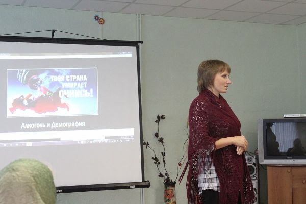 9 сентября в рамках Недели Трезвости группа верхотурского общества «Трезвение» побывала в ЦКСОН профилактики безнадзорности несовершеннолетних, где состоялся круглый стол по теме: "Избавление от зависимости: кодирование или обет трезвости". Сотрудники центра проводят огромную работу с неблагополучными семьями, стараясь облегчить положение детей, находящихся в семьях с пьющими родителями. Инициатором проведения Круглого стола стала руководитель отделения профилактики безнадзорности Марина Кривошеина, которая предложила организовать эту работу совместными силами. Тема лежала на поверхности: как выяснилось во время нашего участия в рейдах, один из методов помощи семьям - кодирование больных членов семьи. Между тем, в Москве этот метод запрещен главным департаментом здравоохранения и запрет одобрен институтом наркологического здоровья нации. Но, как выяснилось во время работы круглого стола, кодировка - едва ли не единственный метод хоть ненадолго облегчить участь зависимых и созависимых людей. Так же выяснилось, что успеха достигают люди после кодировки, начавшие духовную жизнь. Немало вопросов было задано приглашенному на круглый стол фельдшеру - наркологу Татьяне Лапшиной, которая в том числе, разъяснила суть метода кодирования в Верхотурье, проводимого на основе применения медицинских препаратов и беседы с врачом-наркологом. Участники собрания высказали боль за тех несчастных, которые вынуждены бежать из дома от пьяного буйства родного человека. А как быть с самим больным, который во время запоя становится опасным не только для родных, но и для самого себя? По данным из доклада министра здравоохранения В. Скворцовой, в крови 70% умерших в возрасте от 30 до 45 лет присутствует алкоголь.