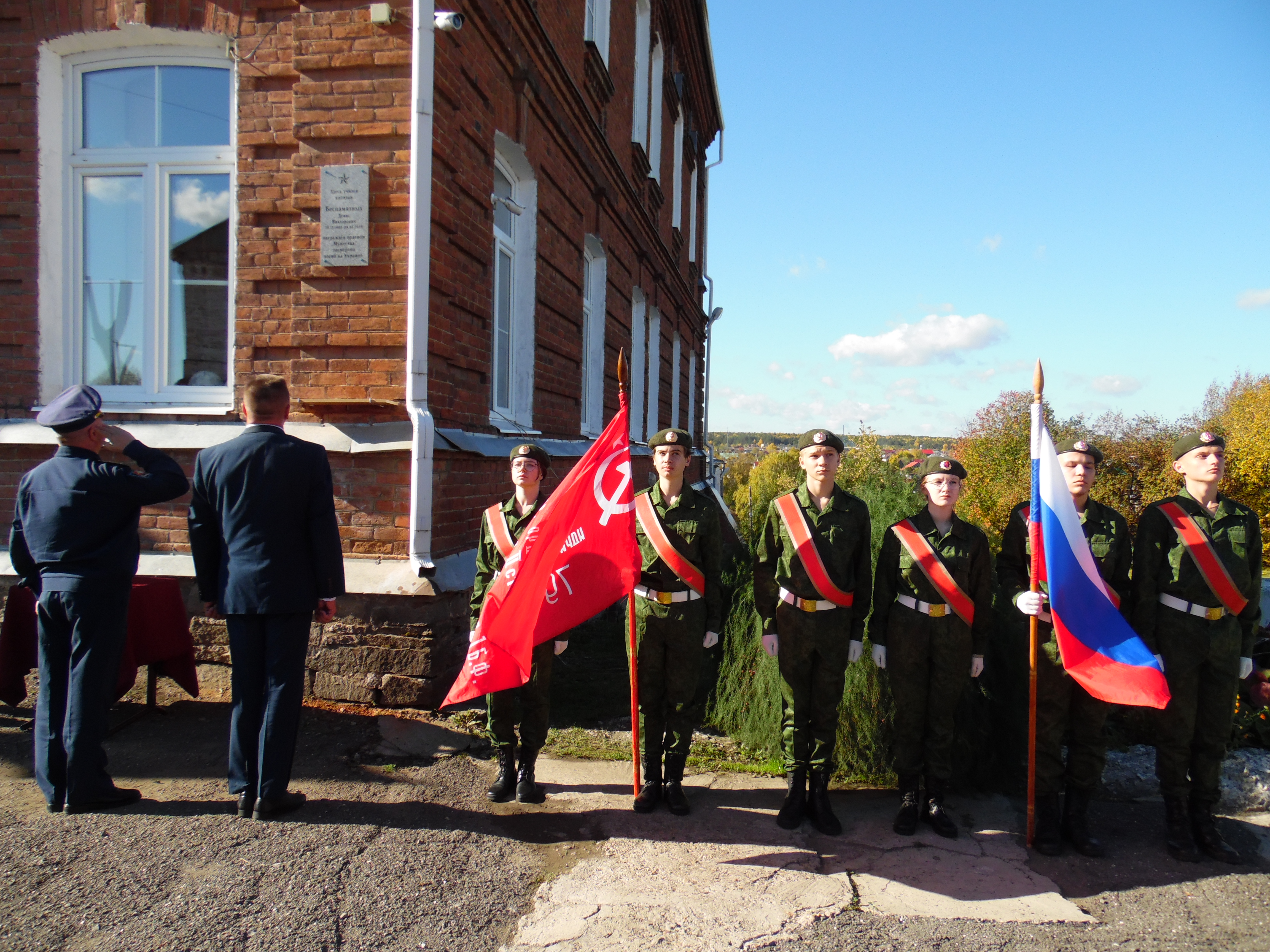 Мемориальные доски с именами Дениса Беспамятных и Анатолия Лазарева установлены на зданиях Верхотурской гимназии и Меркушинской сельской школы. Профессиональный военный, гвардии капитан Беспамятных – выпускник гимназии, а младший сержант Лазарев учился в школе села Меркушино. Оба участвовали в специальной военной операции с самого ее начала. Один погиб в апреле, другой – в июле. 21 сентября, вблизи здания Верхотурской гимназии прошел митинг, выступили школьники с трагической театральной постановкой. Среди приглашенных гостей был руководитель общественной организации «Герои Урала», герой России, участник первой чеченской кампании Олег Касков, а также родные и близкие погибшего воина: вдова, мама, отец, сестры. К мемориальной доске были возложены цветы.