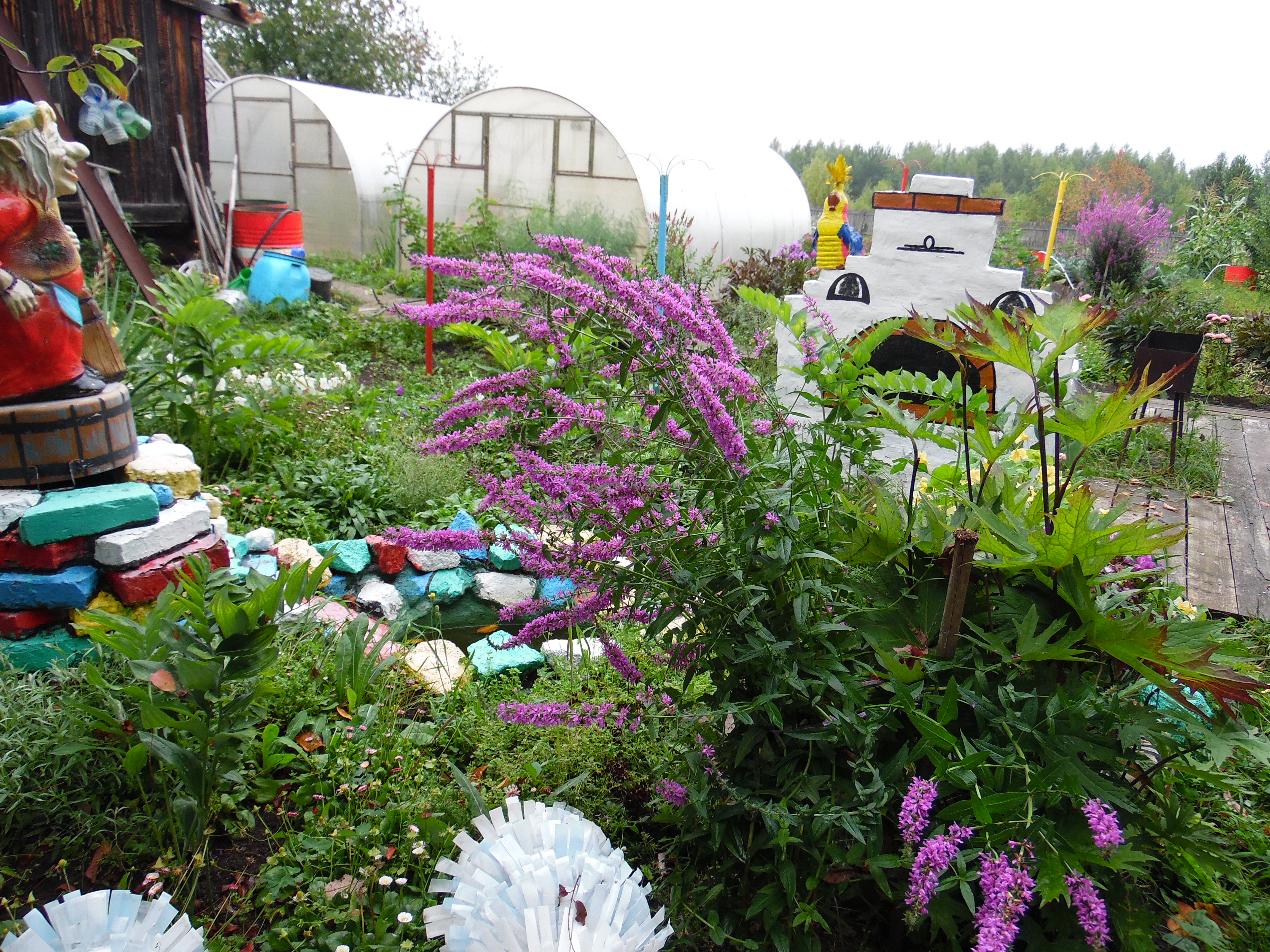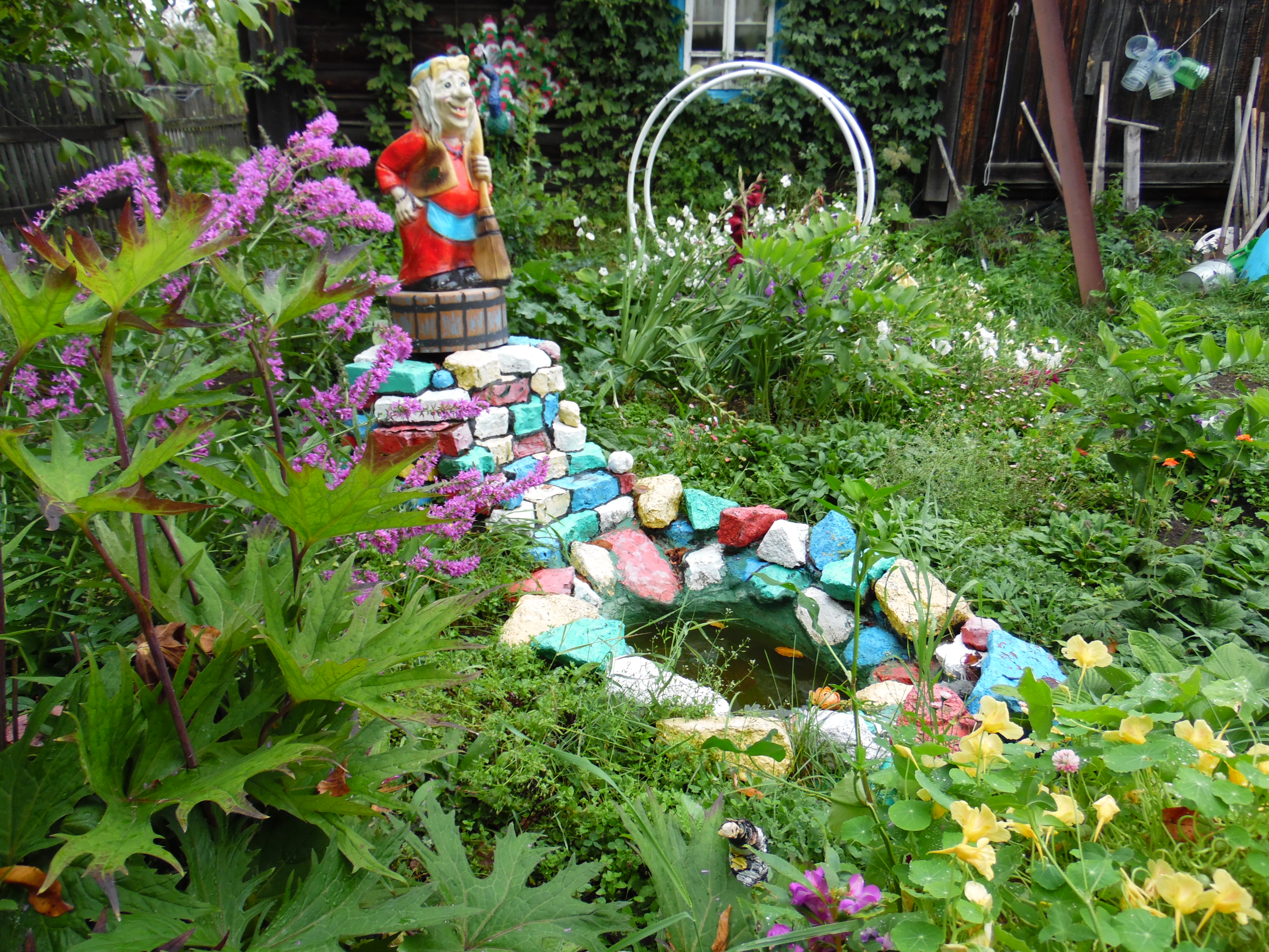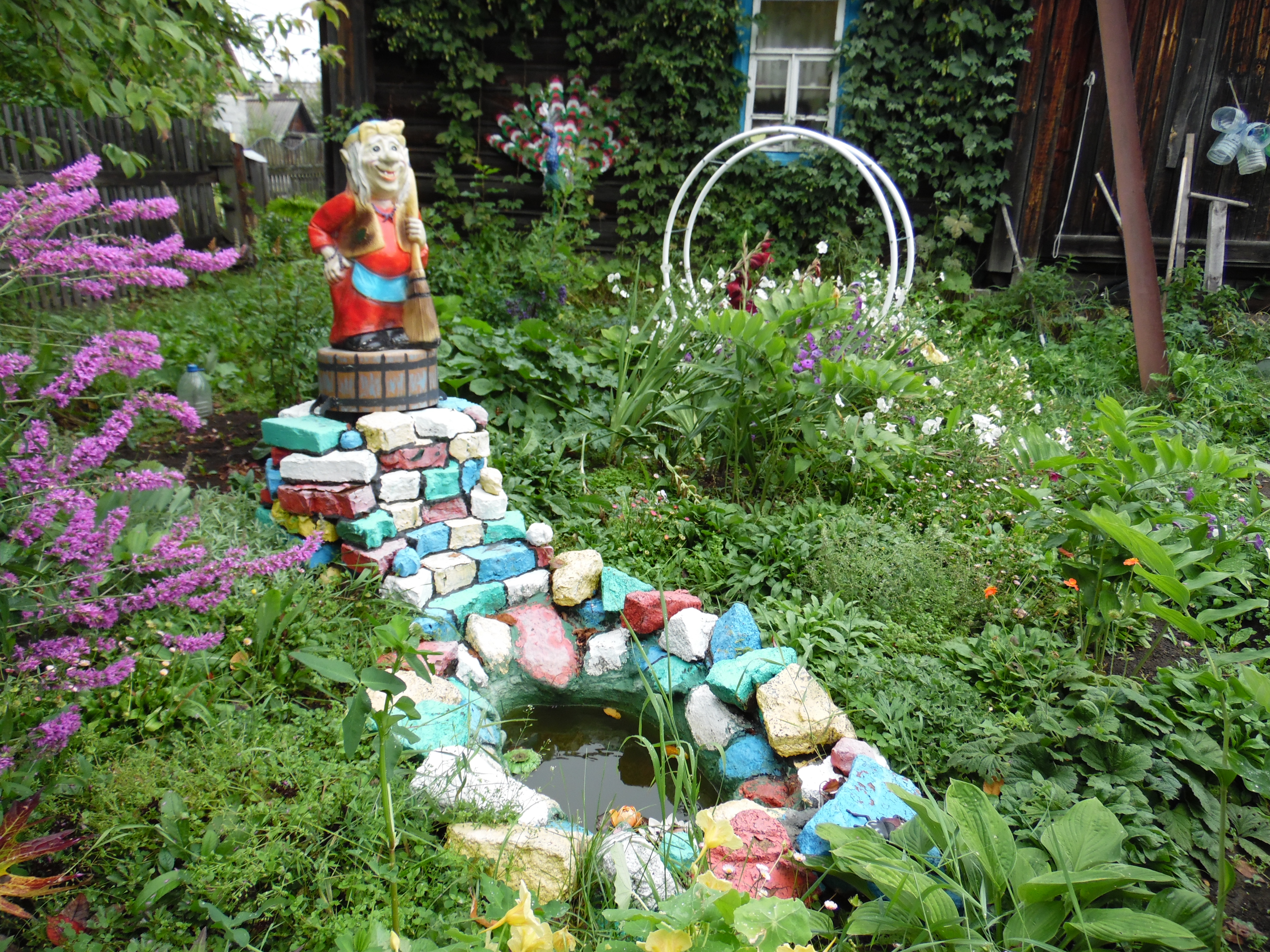 В место добрых чудес превратили свой огород жители поселка Лесозавод Юрий и Вера Дерябины. Помимо обычных грядок у них в огороде есть и русская печь со сказочным героем Емелей, и Баба Яга с метлой, что сторожит бассейн с водицей. Прописались в огороде и белый лебедь, и павлин с жарким оперением. А ягоду клубнику нынче сторожили парочка орлов и пара шмелей. Птицы-проказницы, завидя таких охранников и близко к ягодам не подлетали. Все сделано руками и фантазией хозяйки Веры Владимировны. Орлов и шмелей она изготовила из обычных бутылок, проволоки, скотча, ниток, бумаги. Емеля – на самом деле тряпичная кукла, а кирпичная русская печь с расписным жарким огнем – это необычно оформленная водная скважина. Сказочный огород Дерябиных, куда часто с любопытством заглядывают прохожие, вызывает у людей интерес и добрые улыбки, а Вера Владимировна с удовольствием рассказывает, что и работать, и отдыхать в сказочной обстановке намного лучше и приятней. Иной раз, кажется, сесть бы рядом с Емелей на печь, да и прокатиться по улице.