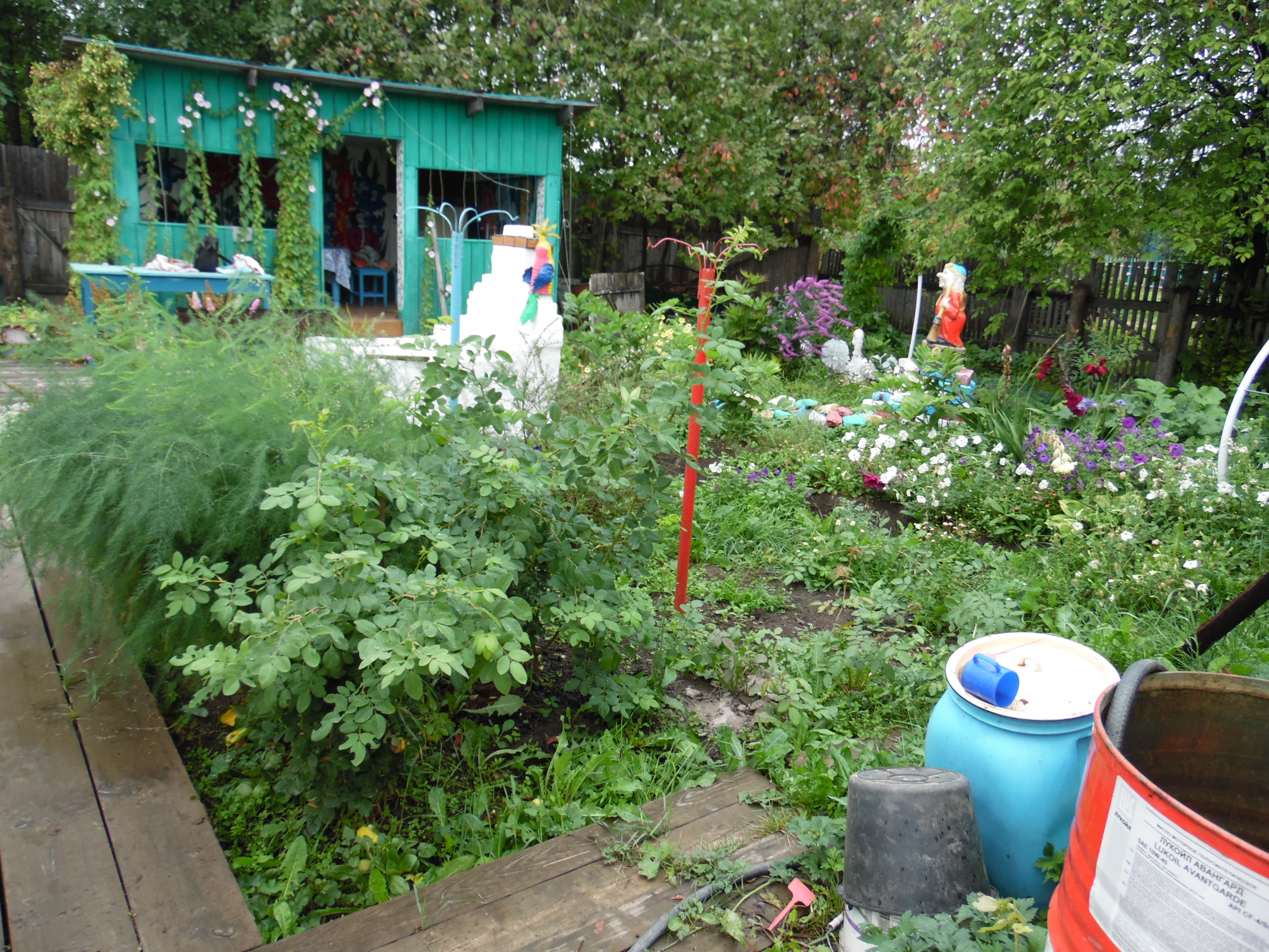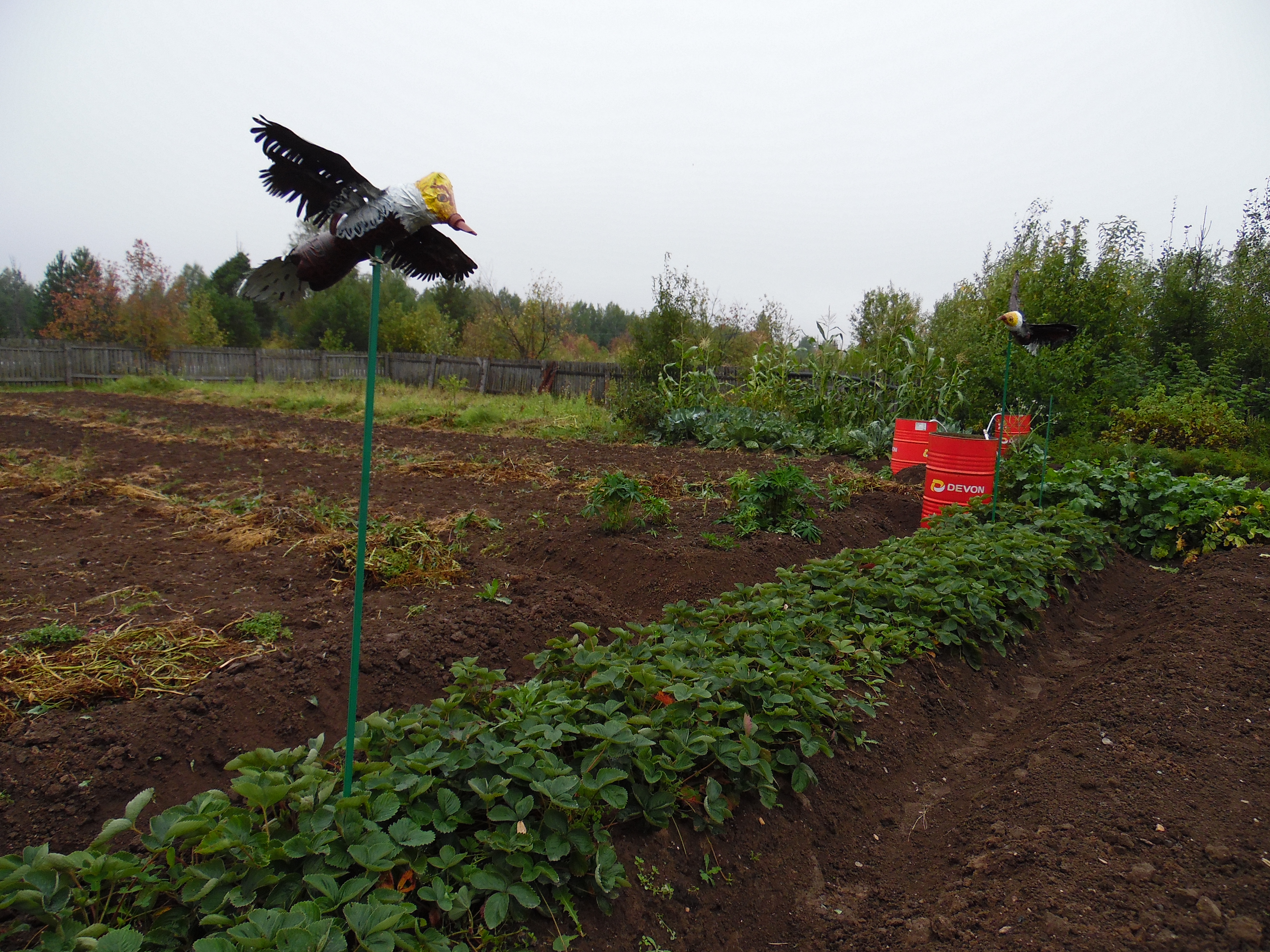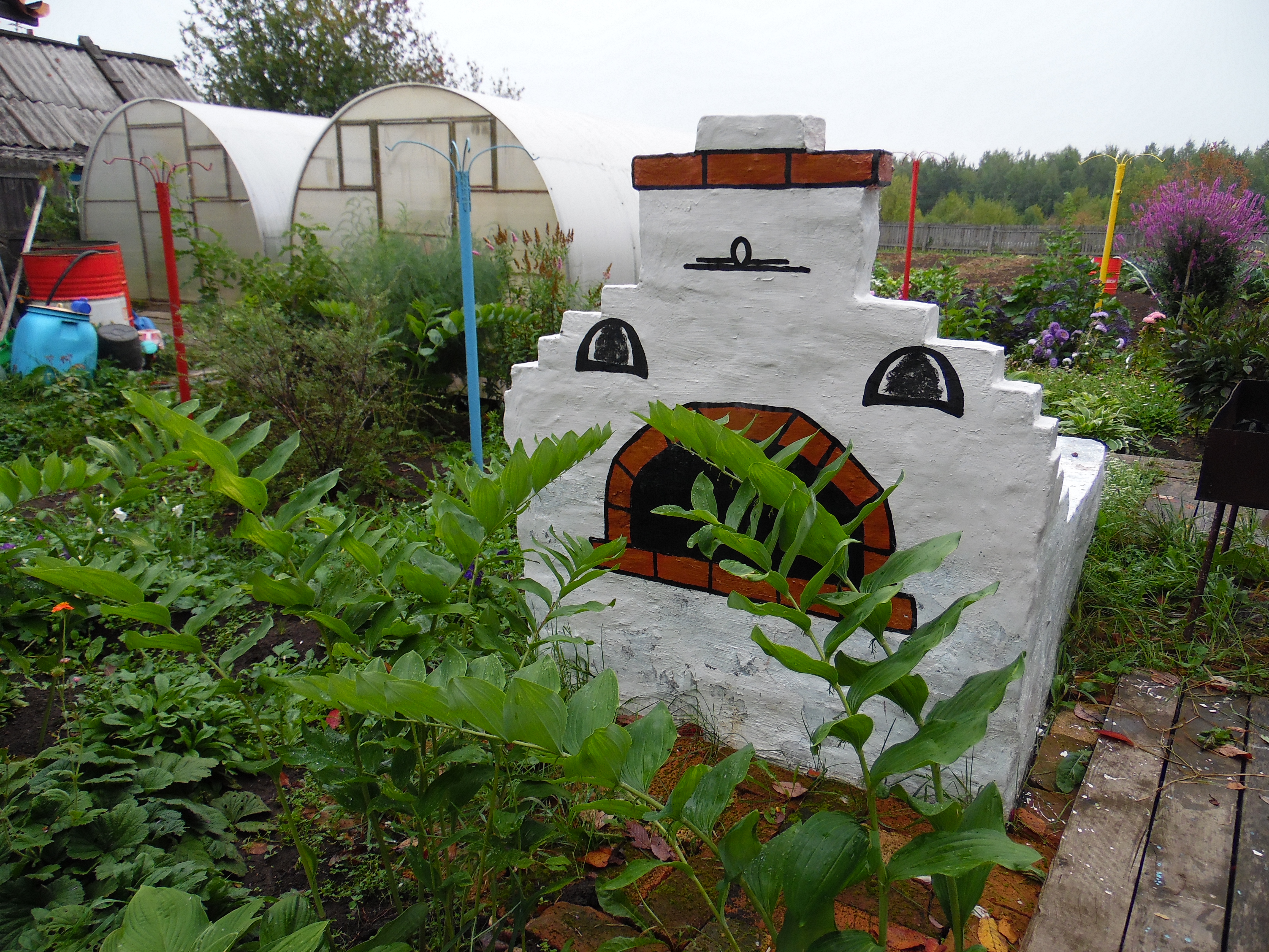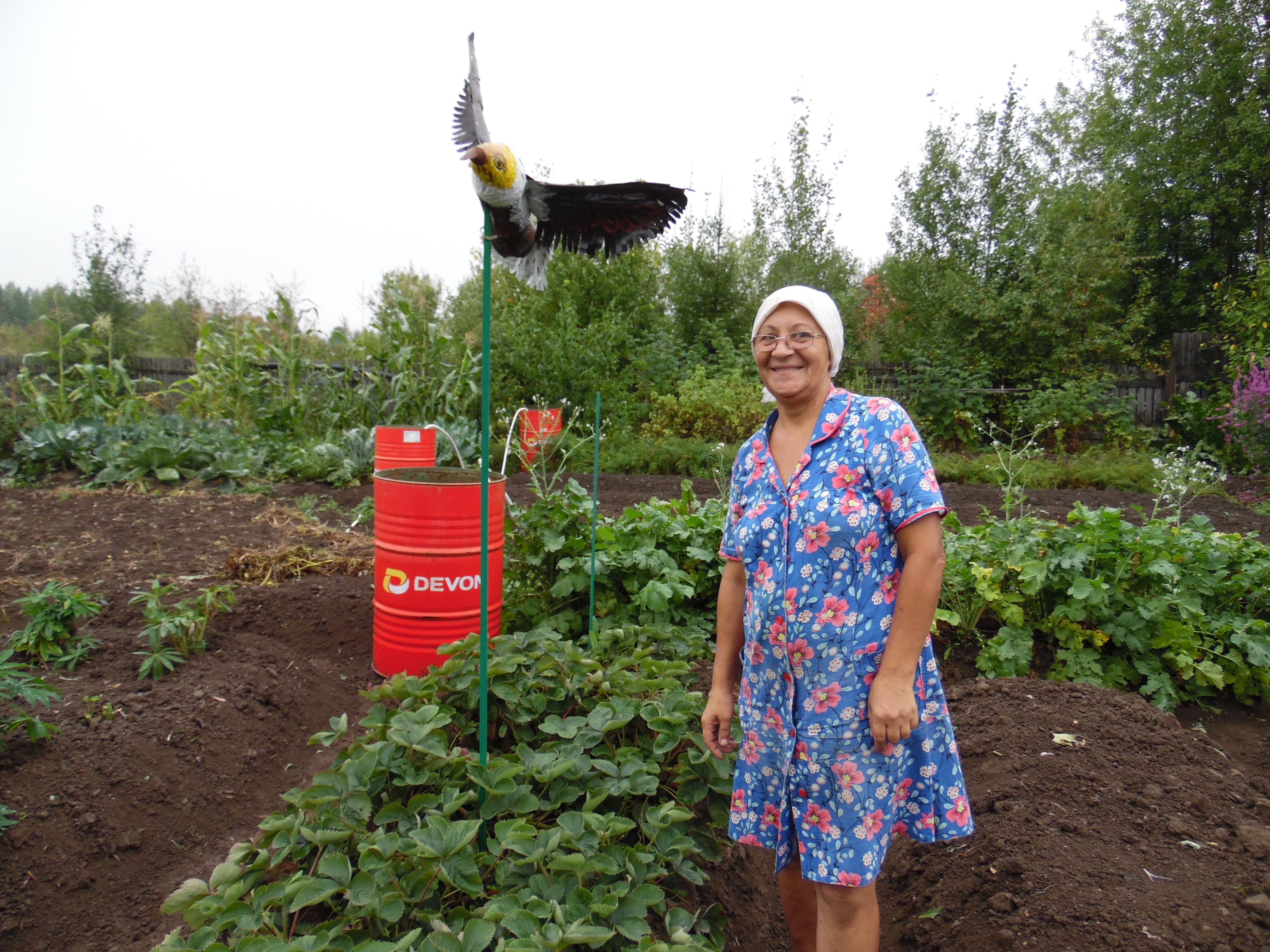 В место добрых чудес превратили свой огород жители поселка Лесозавод Юрий и Вера Дерябины. Помимо обычных грядок у них в огороде есть и русская печь со сказочным героем Емелей, и Баба Яга с метлой, что сторожит бассейн с водицей. Прописались в огороде и белый лебедь, и павлин с жарким оперением. А ягоду клубнику нынче сторожили парочка орлов и пара шмелей. Птицы-проказницы, завидя таких охранников и близко к ягодам не подлетали. Все сделано руками и фантазией хозяйки Веры Владимировны. Орлов и шмелей она изготовила из обычных бутылок, проволоки, скотча, ниток, бумаги. Емеля – на самом деле тряпичная кукла, а кирпичная русская печь с расписным жарким огнем – это необычно оформленная водная скважина. Сказочный огород Дерябиных, куда часто с любопытством заглядывают прохожие, вызывает у людей интерес и добрые улыбки, а Вера Владимировна с удовольствием рассказывает, что и работать, и отдыхать в сказочной обстановке намного лучше и приятней. Иной раз, кажется, сесть бы рядом с Емелей на печь, да и прокатиться по улице.