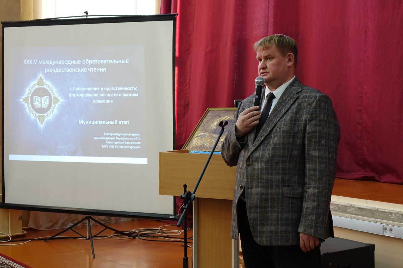 На днях в верхотурской школе №3 состоялся муниципальный этап ⅩⅩⅩIV международных рождественских образовательных чтений «Просвещение и нравственность: формирование личности и вызовы времени». С основными докладами выступили: глава ГО Верхотурский Василий Фомин, начальник управления образования Татьяна Мамонцева, благочинный церквей верхотурского округа игумен Иероним, настоятель Свято-Косьминской пустыни игумен Пётр, настоятель Верхотурского Свято-Троицкого собора отец Владимир. В докладах выступающие раскрывали проблемы в духовно-нравственном воспитании современной молодёжи, предлагали конкретные формы работы с подрастающим поколением. В условиях быстро меняющихся общественных ценностей и особенно попытки Запада навязать своё мировоззрение, становится действительно актуальным сохранение традиций и вековых нравственных устоев, которые всегда сохраняли самобытность и уникальность нашей Родины.