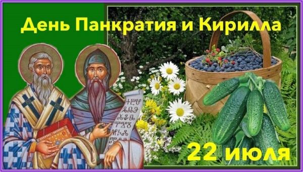 Народно-христианский праздник Панкратий и Кирилл отмечается ежегодно 22 июля. В этот день отмечается память двух священномучеников епископов Панкратия Тавроменийского и Кирилла Гортинского. По легенде, Панкратий жил во времена Иисуса Христа в I веке. Был родом из Антиохии. Вместе с родителями отправился в Иерусалим, когда там был Иисус, чтобы получить его благословение. Там он познакомился с апостолом Петром. После смерти родителей, Панкратий монашествовал, потом стал епископом Тавромении, города, располагавшегося в Сицилии. Он мученически погиб от рук восставших язычников. Кирилл жил в III веке. Когда императоры Диоклетиан и Максимилиан начали преследовать христиан за вероисповедание, его арестовали с другими братьями по вере и бросили в темницу ждать суда. По воле Всевышнего Кирилл чудесным образом оказался на свободе и по указу Господа отправился в Рим. Там он проповедью вдохновил православных не падать духом. Кирилла с Панкратием объединяет то, что оба были епископами. Кирилл жил во времена Максимилиана, который прославился жестокостью по отношению к христианам. Смерть епископа была мученической, после он был канонизирован. В народном календаре 22 июля - день Панкратия и Кирилла. В это время на грядках появляются первые огурцы. Первым плоды нового урожая пробовал младший член семьи. Ещё с этого дня начинали собирать чернику. В народе говорили: «Черника уведет от живота лихо». Хозяйки пекли пироги с черникой, варили варенье из этой ягоды. Наши предки любили и почитали эту ягоду, считая, что она обладает целебными свойствами. И сегодня чернику рекомендуют употреблять людям с плохим зрением, ревматизмом, страдающим болезнями желудочно-кишечного тракта.