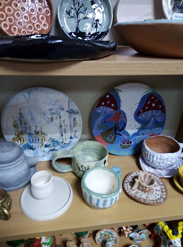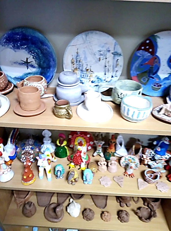 В Доме народных промыслов и ремесел вновь открылась студия по работе с глиной. Новый руководитель кружка Кристина Литовских –коренная жительница Верхотурья, человек талантливый и очень увлеченный своей работой. В студию ходят дети в возрасте от семи до девяти лет. Учатся ручной лепке, работе на гончарных кругах, покрытии изделия глазурью. Изготовляют они кружки и тарелочки с верхотурской символикой, с сюжетами русских сказок. Ну как не полюбуешься на тарелочку, где заяц предлагает девочке корзину ягод? Есть тарелки и блюдца с верхотурскими соборами, с изображением солнышка, с месяцем, звездами над верхушками елей. Все очень красиво!