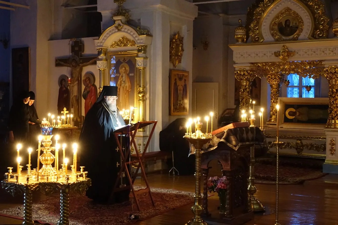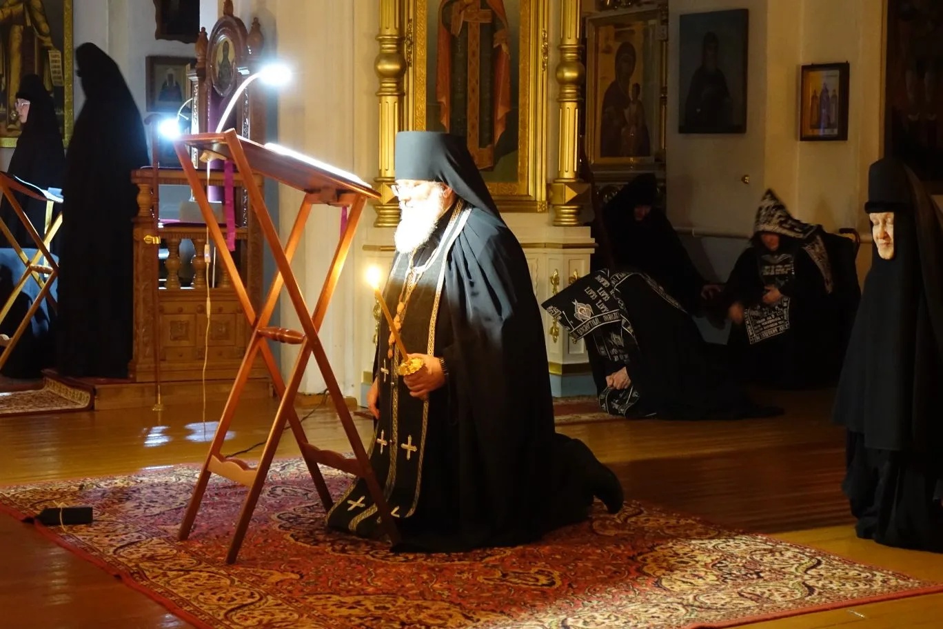 Сегодня игумен Иероним читал заключительную часть канона Андрея Критского в древнейшей женской обители за Уралом – в Свято-Покровском монастыре. Намоленный столетиями монастырь в этот вечер был наполнен невообразимой тишиной благодати Божией, в которой звучал проникновенный глас наместника Свято-Николаевской Верхотурской мужской обители, что располагало всех присутствующих к глубоким покаянным чувствам.